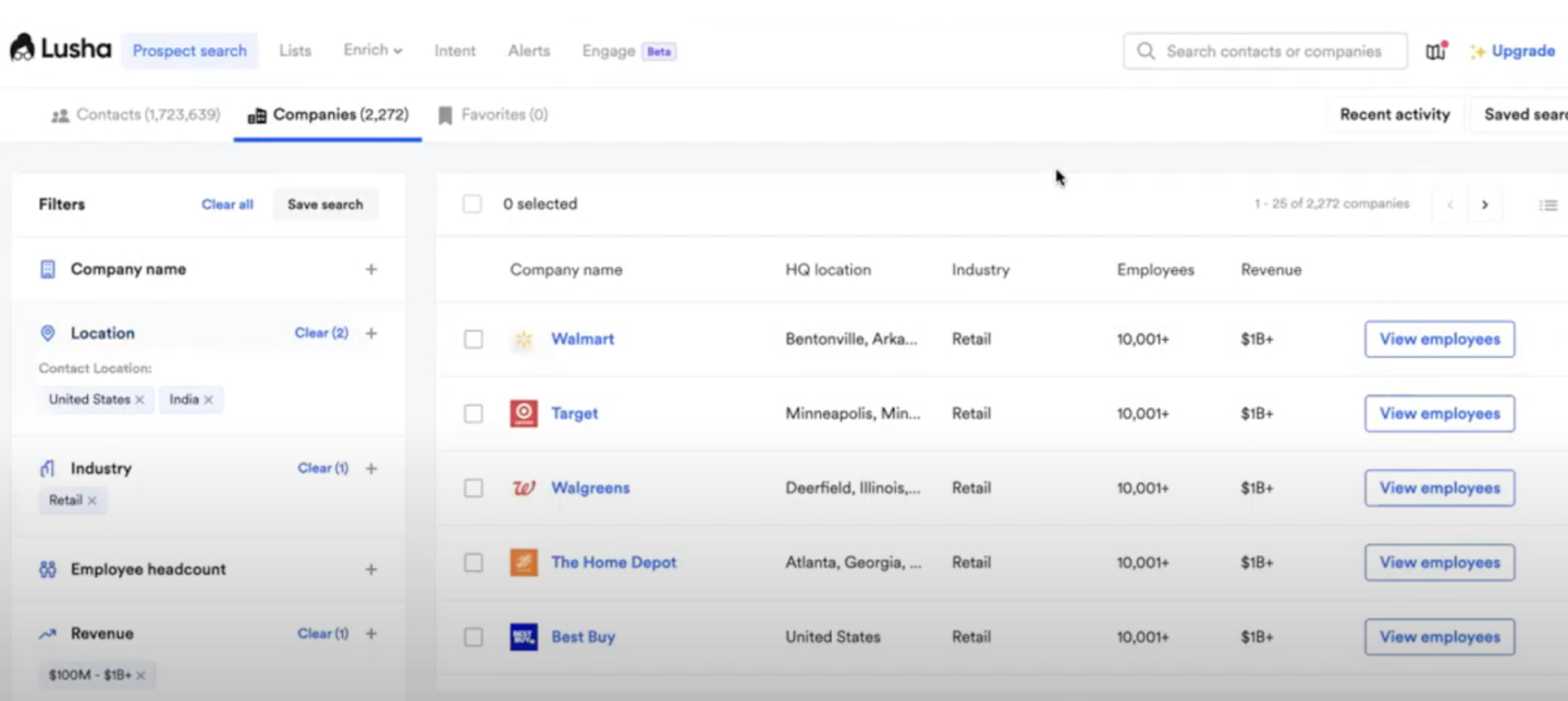 Just search for organizations with the same filters. While it doesn't have a revenue filter, you can search by location, industry, and company size. A great way to replicate the results by the tools is to find a correlation between revenue and number of employees.