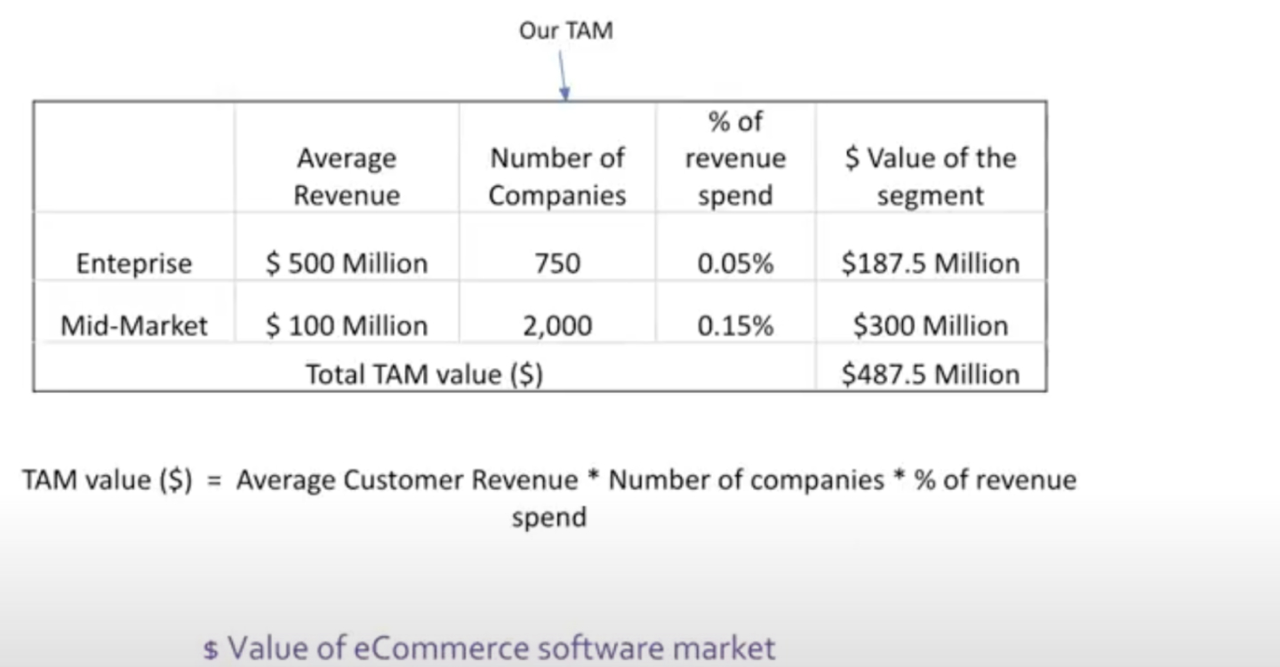 For example, let's say you're running a SaaS company offering software for consumers to go online, let’s call it Anywhere Commerce. Your TAM would include both the number of potential customers and the total amount they might spend on your solution.
